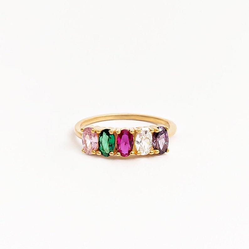 Multi-Stone Custom Birthstone Ring – Select Up to Six Gems to Build Your Own Meaningful Ring for Mom, Kids, Anniversary, or Friendship